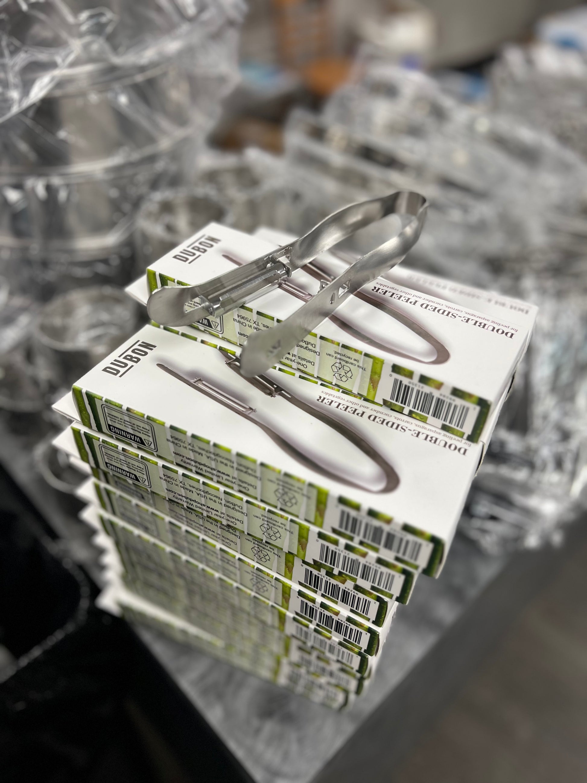 Using a double-sided peeler allows you to peel curved asparagus while applying the same pressure to both sides, thus protecting it from breaking.
